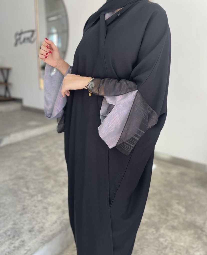 "عباية مصممة بأسلوب أنيق يجمع بين الحداثة والأصالة، مزينة بتطريزات فاخرة لتكون خيارك المثالي للمناسبات الخاصة."