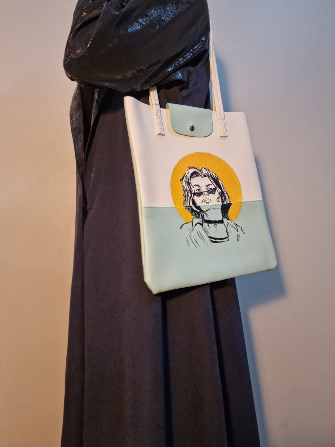 حقائب يد  بألوان مختلفة ورسومات باليد