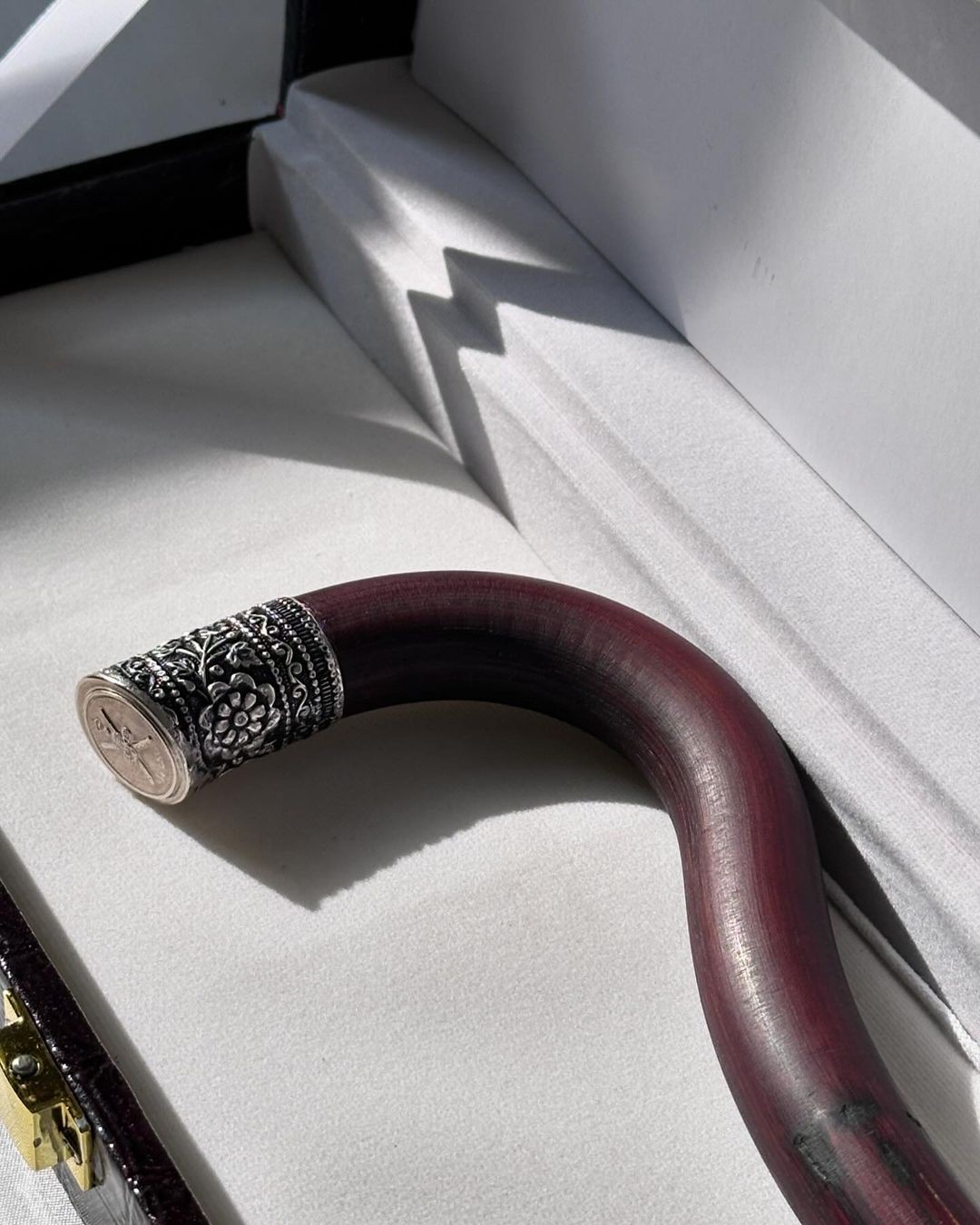 خيزران سنغفوري متين فاخر بتلبيسة فضة بتصميم فخم وأنيق مع البوكس