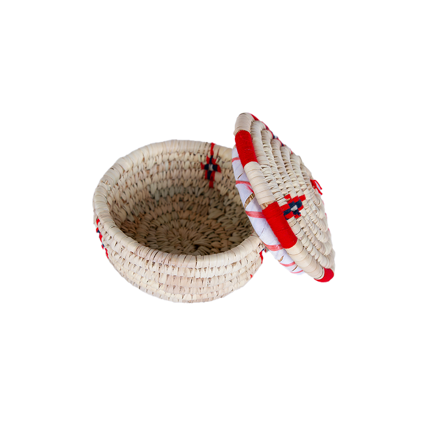 اجعل تقديم الطعام تجربة فريدة وجميلة مع مكبة خزف المصنوعة من السعف والمزخرفة بلمسات فنية. تتميز هذه المكبة بتصميمها التقليدي والأنيق، مع غطاء محكم يحافظ على نضارة الطعام ويمنع التلوث. مثالية لحفظ وتقديم أصناف متنوعة من الطعام مثل الفواكه والمكسرات، مما يوفر لك طريقة رائعة وأنيقة لتقديم الطعام لضيوفك.